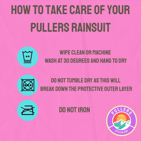 It is important to take good care when washing your Pullers Rainsuit to ensure it stays bright and bold, as well as waterproof and effective.